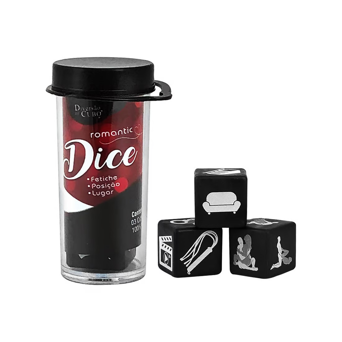 O Dice Romantic da Diversão ao Cubo vem com 3 dados para tornar a brincadeira ainda mais excitante, 01 dado representa o fetiche que o casal terá que fazer, 01 dado a posição, e o último dado o lugar, diversão e prazer não vão faltar.